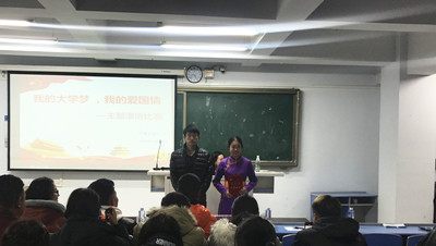 为了深入贯彻落实习近平新时代中国特色社会主义思想和党的十九大精神,继承和发扬爱国主义精神,纪念“12.9”学生爱国运动,使学生树立报效和振兴中华民族的远大志向,环境工程系于12月9日19点30分,在都林楼306教室开展“我的大学梦,我的爱国情”主题演讲比赛活动。通过初赛比拼,共有8名选手进入了决赛,环境工程系团总支乌依勒斯和陈斌老师以及100余名同学观看了本场比赛。