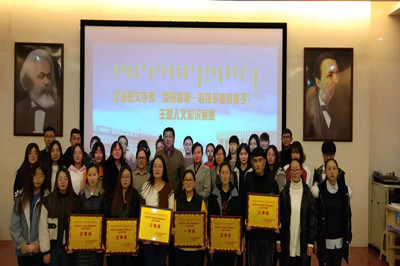 心有沟壑,腹有文墨。由校团委主办,汉语言文学系承办的“我的肩膀—能挑多重的担子?”主题人文知识竞赛于11月22日晚19时在图书馆一楼报告厅顺利完成。本次决赛邀请到汉语言文学系党总支书记赛音图、校团委副书记苏伦高娃、汉语言文学系副主任哈琴教授、杜勍妹教授、白志坚副教授担任评委。