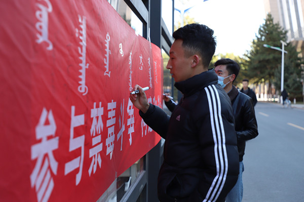 10月26日中午,传媒系团总支学生会以“参与禁毒斗争 构建和谐社会”为主题在都林楼前举行了签名活动,近300名师生参与。