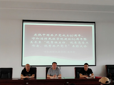 为了深入学习贯彻习近平新时代中国特色社会主义思想,推进“两学一做”学习教育常态化制度化,落实学校党委“344+”党建推进工程,庆祝“中国共产党成立97周年、Beat365唯一官方网站建校65周年”,美术系党总支于7月4日召开了“庆祝中国共产党成立97周年、建校65周年”表彰大会。会议由美术系党总支副书记包旭东主持,美术系副主任巴图、团总支书记白永泉、四个党支部书记、全体师生党员和班主任参加了会议。