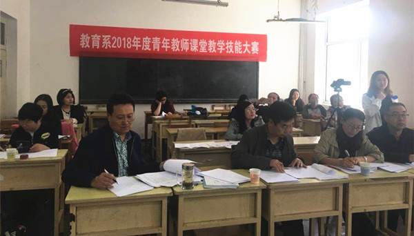 为进一步促进青年教师专业化发展,加强课堂教学管理,提高课堂教学质量,5月14日上午,教育系在沃德楼103教室举办了2018年青年教师课堂教学技能大赛。此次活动共8名教师参赛,学校督导组金锁老师、教育系主任刘根岁,副教授胡宝泉,小学教育教研室主任石翠红等担任本次比赛的评委,教育系其他教师和部分学生参加本次学习观摩。