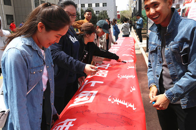 4月23日中午,传媒系团总支学生会以“网络无边 青春有限 珍惜时间 文明上网”为主题在都林楼前举行了签名活动,近300名师生参与了此次活动。