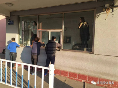 体育系同学打扫校园