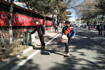 外语系同学打扫校园