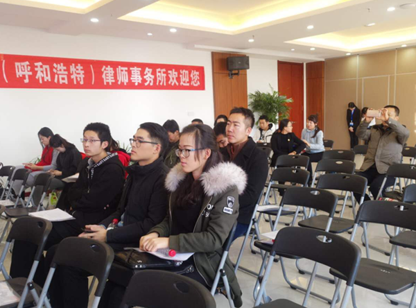 为学习贯彻党的十九大精神,宣传法制精神,提高学生专业学习,12月3日,在法律系团总支副书记姜鹏带领下,法律系部分学生前往呼市京师律师事务所参加“2017内蒙古法律文化论坛·中共党史文化暨十九大报告学习”专题会议和交流座谈。