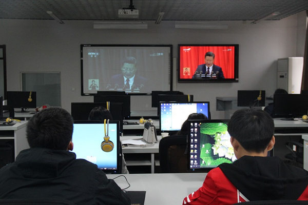 灿烂金秋,华章启幕,中国共产党第十九次代表大会10月18日上午9时在北京人民大会堂隆重开幕。计算机系中心组成员和党员师生怀着激动期盼的心情全程观看了开幕式。
