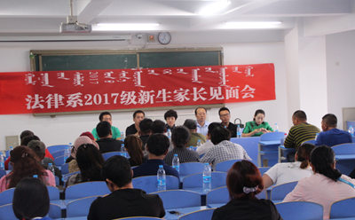 为加强系部和新生家长之间的沟通、交流,共同促进大学生的健康成长与发展,法律系于9月7日下午4时30分,在都林楼406教室召开2017级新生家长见面会。法律系党总支书记海霞、系主任包山虎、党总支副书记包玉柱、团总支副书记姜鹏、新生班主任老师、新生家长代表80余人参加。见面会由法律系党总支书记海霞主持。