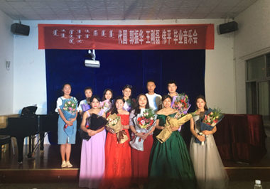 音乐系于2017年5月16日—7月6日,分别在学校图书馆二楼报告厅、演播厅和逸夫音乐楼舞蹈室等场所,共举办了17场技能教学成果展演活动。其中,声乐教研室6场(毕业生汇报音乐会4场、实践教学汇报演出2场),键盘教研室3场(毕业生汇报音乐会1场、实践教学汇报演出2场),器乐教研室5场(毕业生汇报音乐会5场),理论教研室1场(实践教学汇报演出1场),教师个人出校深造回校汇报音乐会2场(莫日根图雅巴杨手风琴独奏音乐会、韩木兰独唱汇报音乐会)。另外,在举办各类音乐会之余,还为师生举办了一场晁浩健教授声乐大师课讲座。