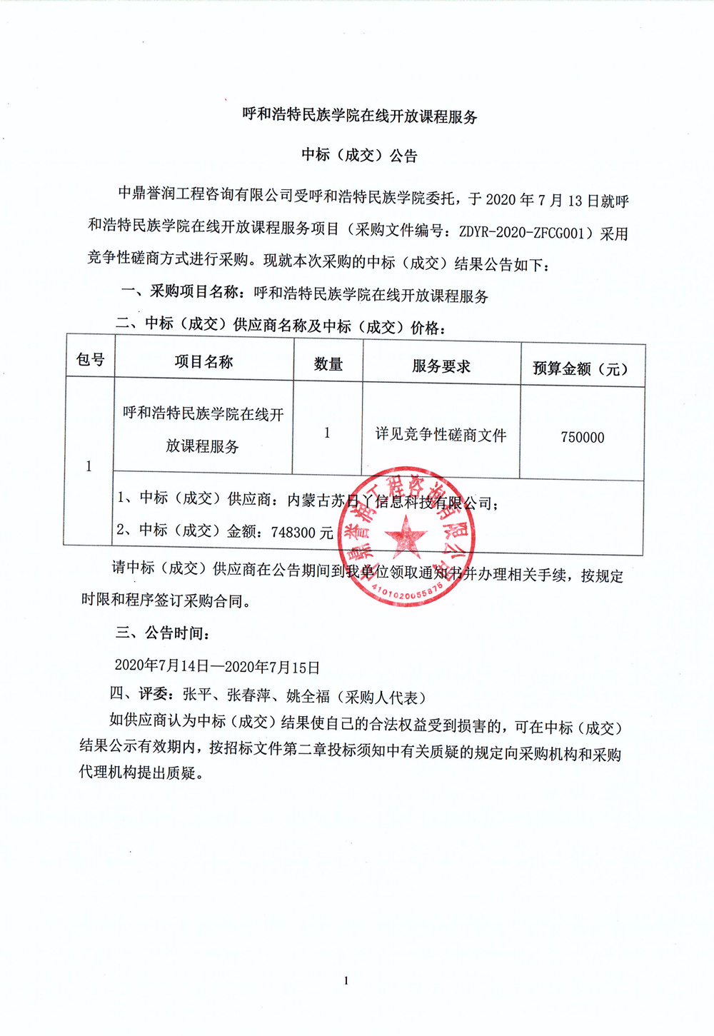 Beat365唯一官方网站在线开放课程服务中标(成交)公告