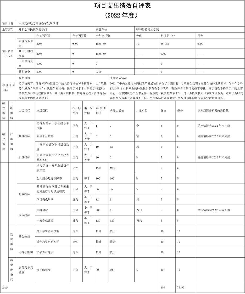 2.中央支持地方高校改革发展资金项目自评