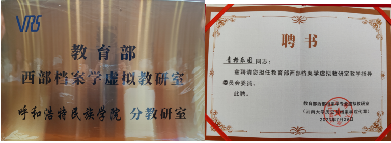 Beat365档案学教研室是西部档案学专业虚拟教研室的成员之一,青格乐图老师被聘为西部档案学专业虚拟教研室教学指导委员会委员。