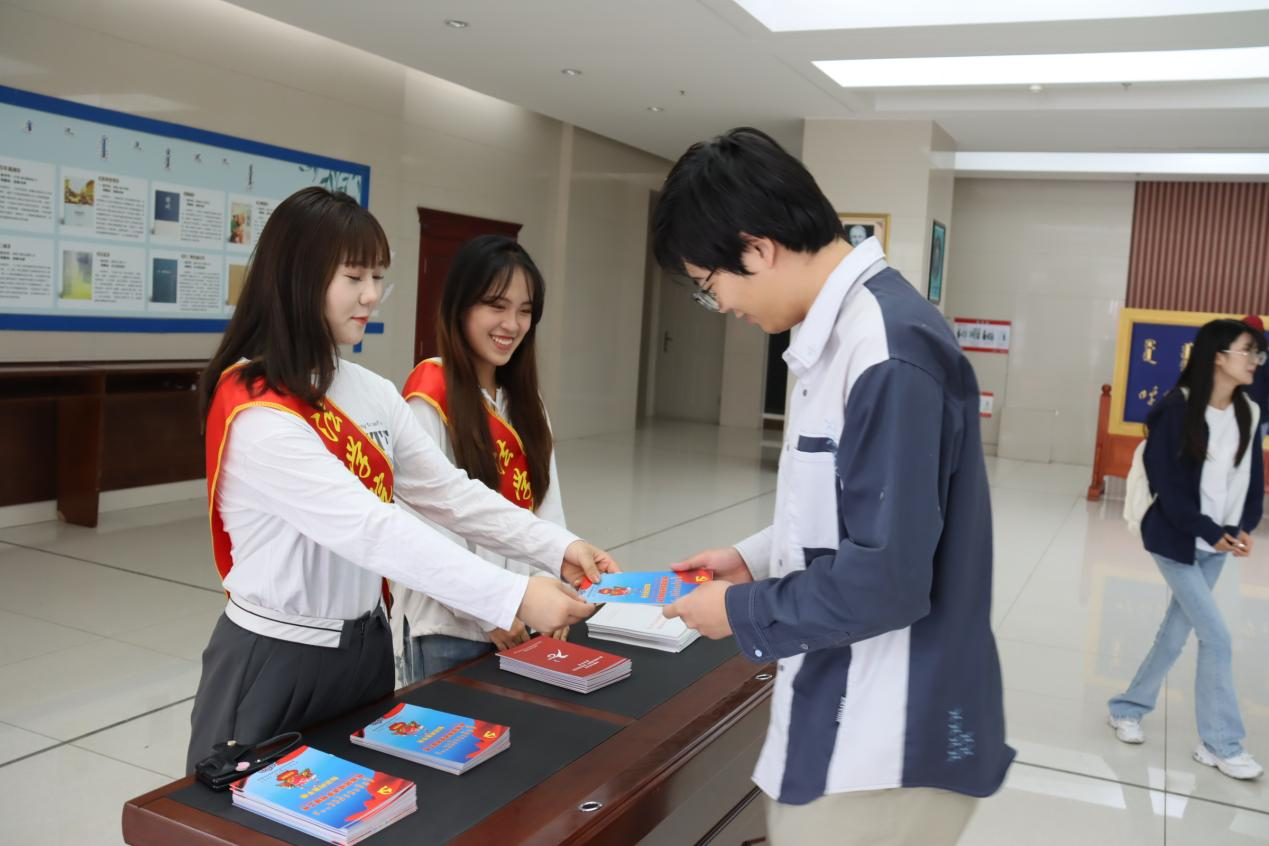 推普周期间,校园内悬挂主题横幅、海报,宣传屏滚动播放主题宣传片,志愿者发放各类宣传手册,在全校营造了学习使用国家通用语言文字的浓厚氛围。