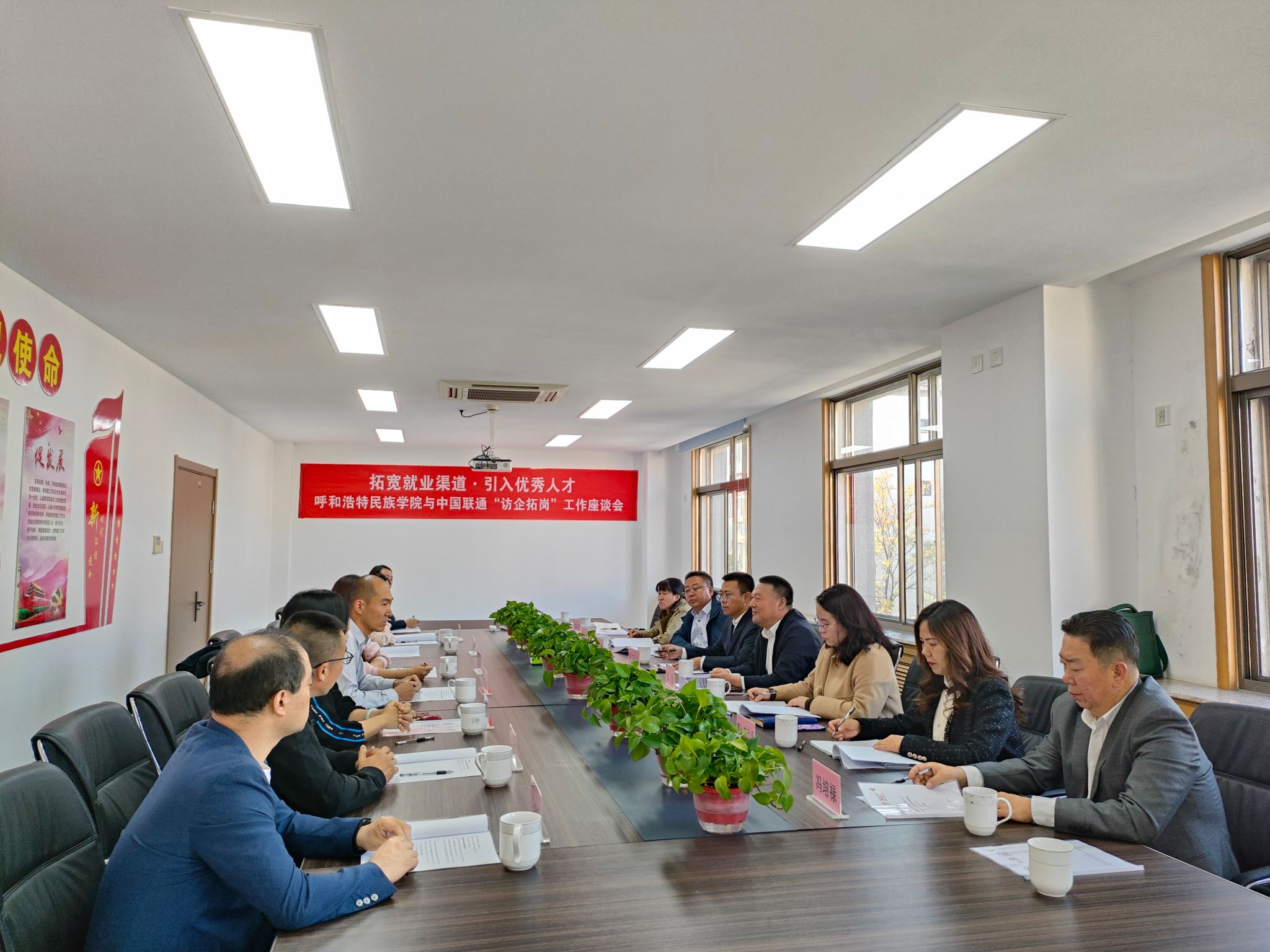 为拓宽就业渠道,进一步落实2024届毕业生就业工作,10月14日下午,招生就业处处长包仓一行赴中国联通呼和浩特市分公司考察调研并交流座谈。