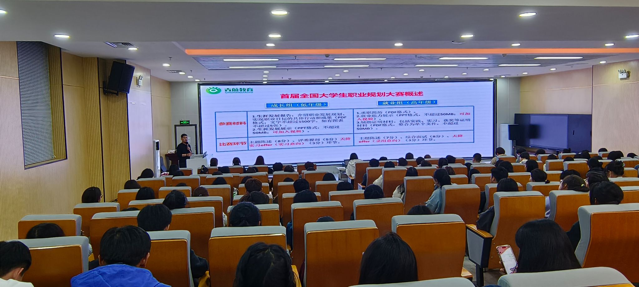 本次讲座特邀青航教育联合创始人、大学生职业生涯规划导师王祥主讲。王祥从什么是职业生涯规划、为什么要做职业生涯规划、如何做职业生涯规划三个维度出发,围绕职业兴趣、职业价值观、职业技能等内容,详细介绍了大学生做好职业生涯规划的重要作用,并从大赛基本信息梳理、赛道设置、评审标准、大赛内涵逻辑以及备赛若干建议等多个方面,对首届全国大学生职业规划大赛进行了详细解读,分析了大赛背后的底层逻辑和内在深意,希望同学们以参加赛事活动为契机,在竞技中磨砺和提升,追求进步、追求卓越,实现幸福人生。