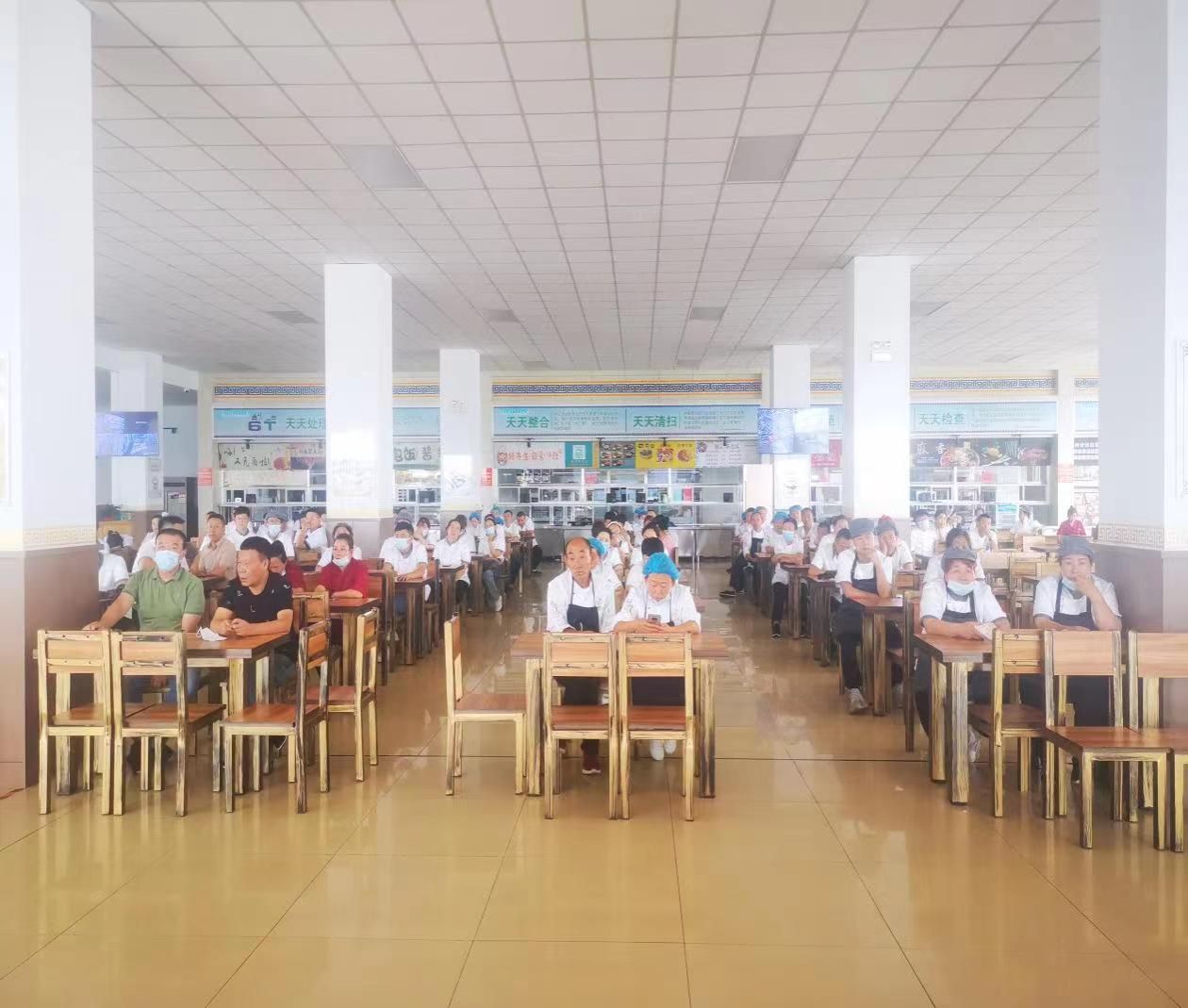 餐饮服务保障工作组多次邀请自治区市场监督管理审评查验中心、呼和浩特市市场监督管理局、新城区市场监督管理局海东路市场监督管理所工作人员,对学校餐饮工作人员进行了餐饮保障专项培训和检查。校内通过突击检查以严格的安全监管,保障校庆服务活动的顺利开展。餐饮服务保障工作组多次讨论研究制定校庆菜单,精心布置就餐环境,为校庆汇报演出的演员送餐,切实保障广大师生、校友的餐饮安全,全力提供温馨的就餐环境。