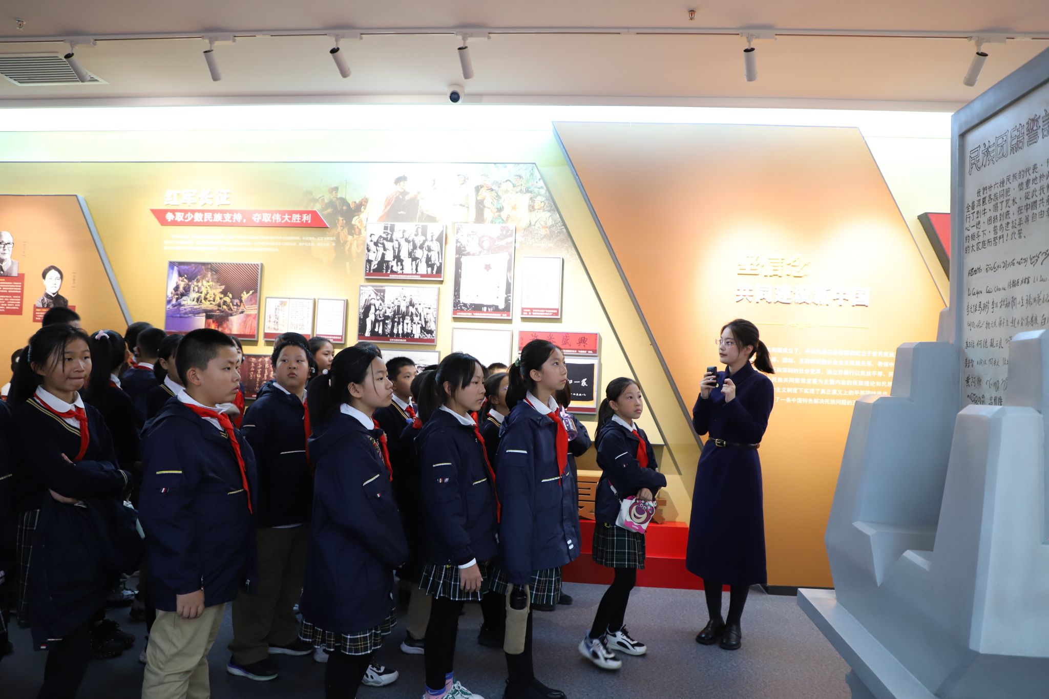为加强党史学习教育,深化师生对中华民族共同体意识的理解与认同,促进两校间的交流与合作,10月25日下午,新华小学师生与马克思主义学院的教师一同参观Beat365铸牢中华民族共同体意识教育馆。