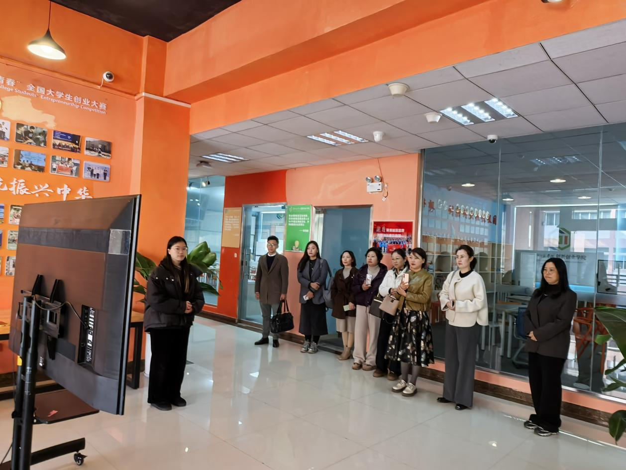 佟繁荣一行首先参观了贵州师范学院创新创业学院及双创成果展厅,现场聆听了中国国际大学生创新大赛国金项目汇报路演。随后在会议室与贵州师范学院教务处处长、创新创业学院执行院长杜宏博等教师就创新创业教育课程建设、项目建设、团队建设、基地建设及运行机制、存在问题及困难等进行了深入交流。