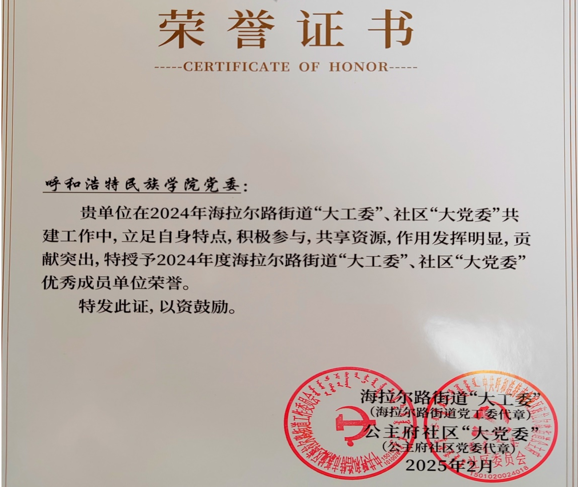 Beat365被授予2024年度海拉尔路街道“大工委”社区“大党委”优秀成员单位荣誉称号
