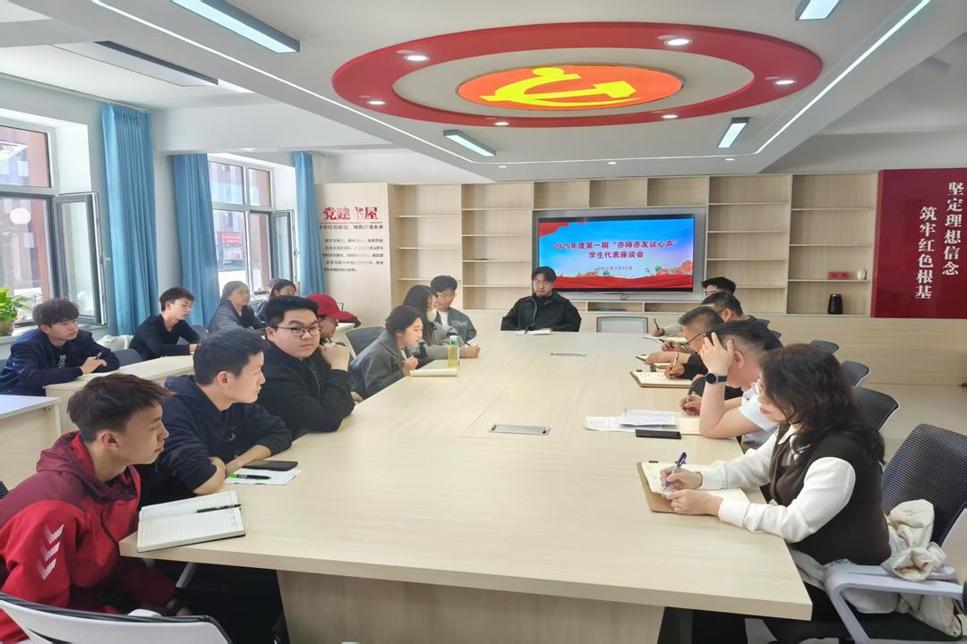 为畅通学生沟通渠道,切实解决学生关切问题,3月20日下午,学生工作部在“一站式”学生社区“一学院一品牌”主题文化公寓党团活动室组织召开2025年第一期“亦师亦友议心声”学生代表座谈会。学生工作部部长常喜、相关科室负责人及各学院学生代表参加座谈。