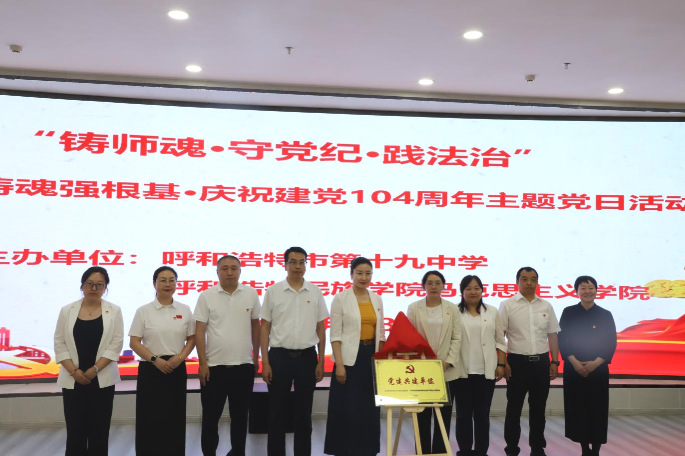 “铸师魂 强根基 践法治”马克思主义学院携手呼和浩特市第十九中学联合开展 “七一”主题党日活动