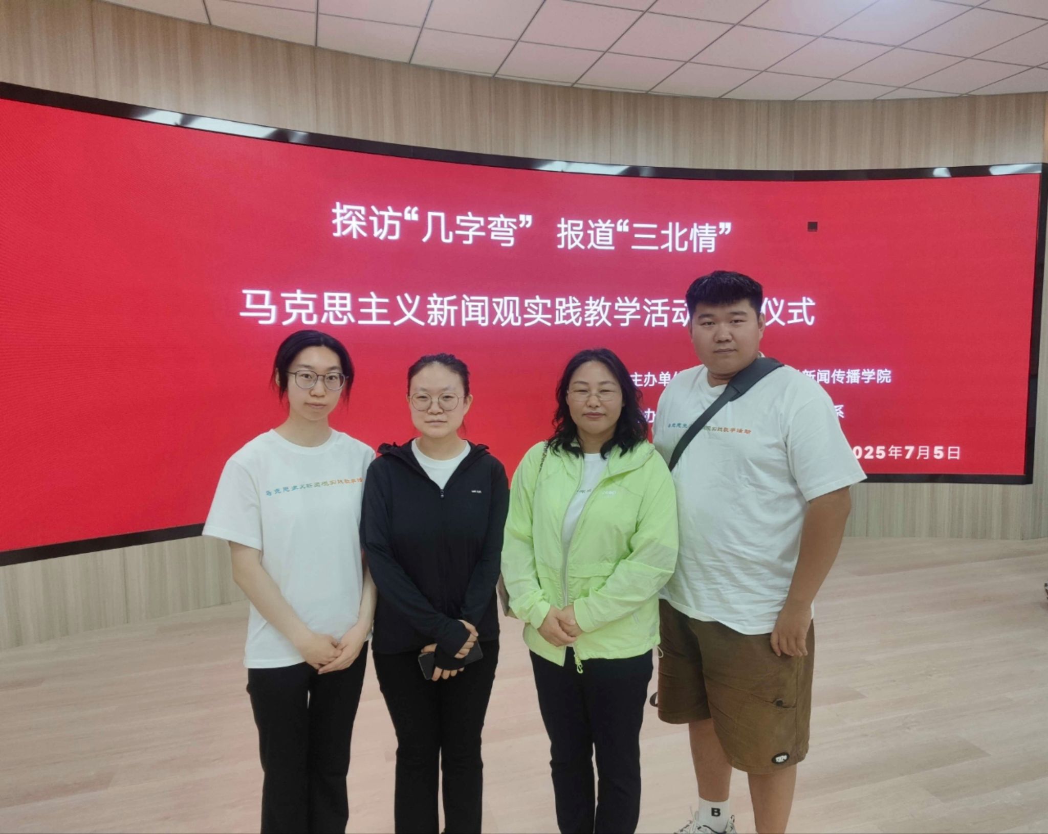 7月5日,新闻传媒学院新闻学教研室主任萨仁高娃带领2023级新闻学班学生闫欣、李琦、霍启光在河套学院共同参与由内蒙古师范大学新闻传播学院联合自治区高校马克思主义新闻观教育联盟高校共同开展的“探访‘几字弯’报道‘三北情’:马克思主义新闻观实践教学活动”启动仪式。
