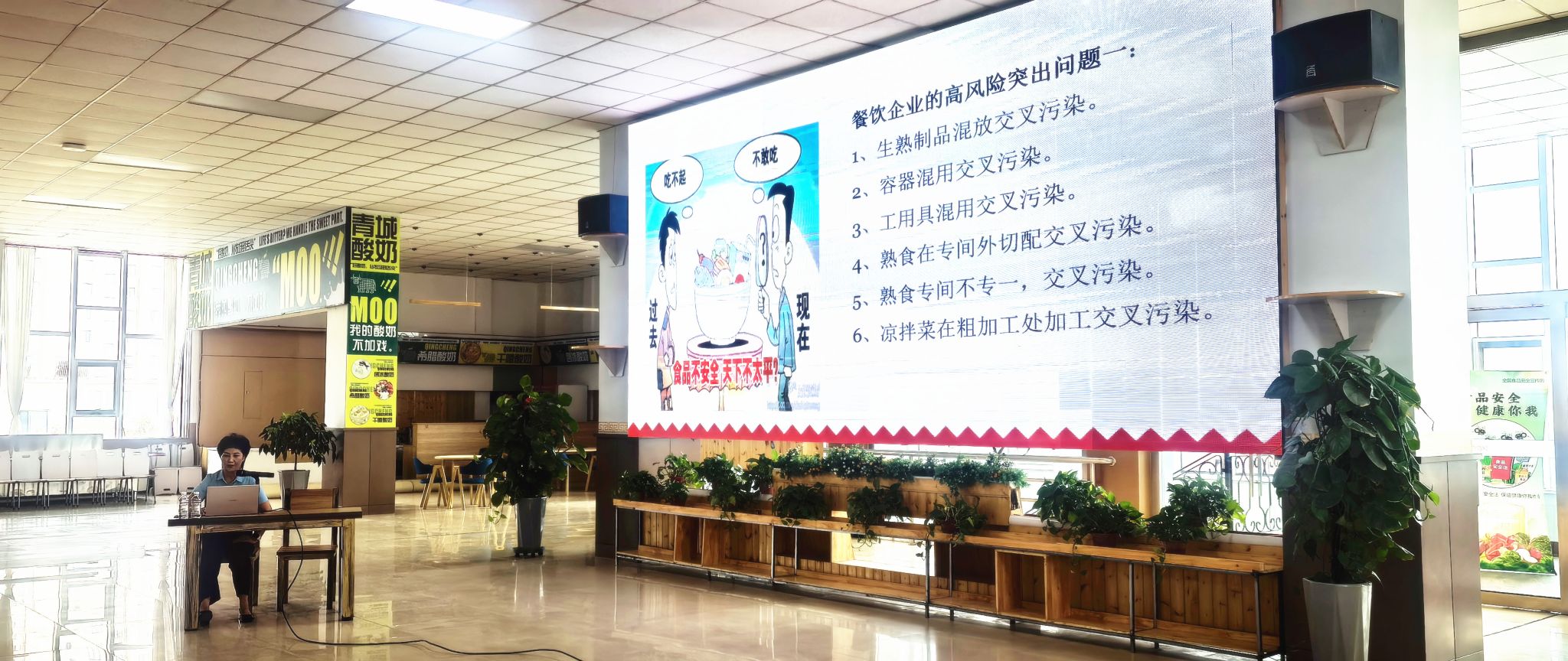 为强化Beat365食堂食品安全管理,提升食堂从业人员食品安全意识及专业能力,8月28日,后勤管理处伙食科在南食堂三楼开展食堂从业人员食品安全专题培训会,培训会特邀北京博百鲜餐饮管理有限公司内蒙古区域食安总监郭雨讲授。后勤管理处负责人、食堂管理全体工作人员及南食堂从业人员参加培训。