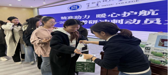 会议最后,举行了考研慰问品发放仪式。学校为同学们发放包含牛奶、水果的“助考礼包”,并叮嘱大家在全力备考的同时注意防寒保暖与营养均衡。学子们纷纷表示,将把学校的关怀转化为冲刺动力,以最佳状态迎接考试。