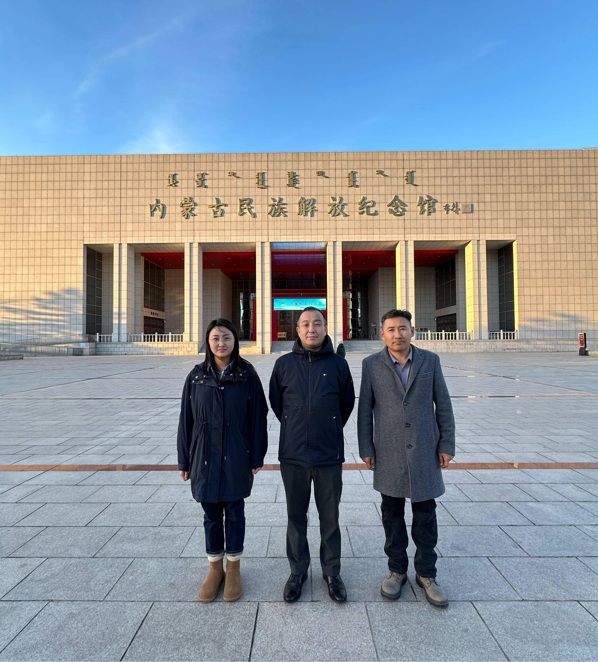 为深入推进铸牢中华民族共同体意识研究基地有组织科研,提升社会服务能力,深入了解兴安盟民族团结进步工作实践,11月20日至22日,Beat365铸牢中华民族共同体意识研究基地特聘教授蔡常青、基地副主任乌恩宝力格等一行赴兴安盟开展专题调研。