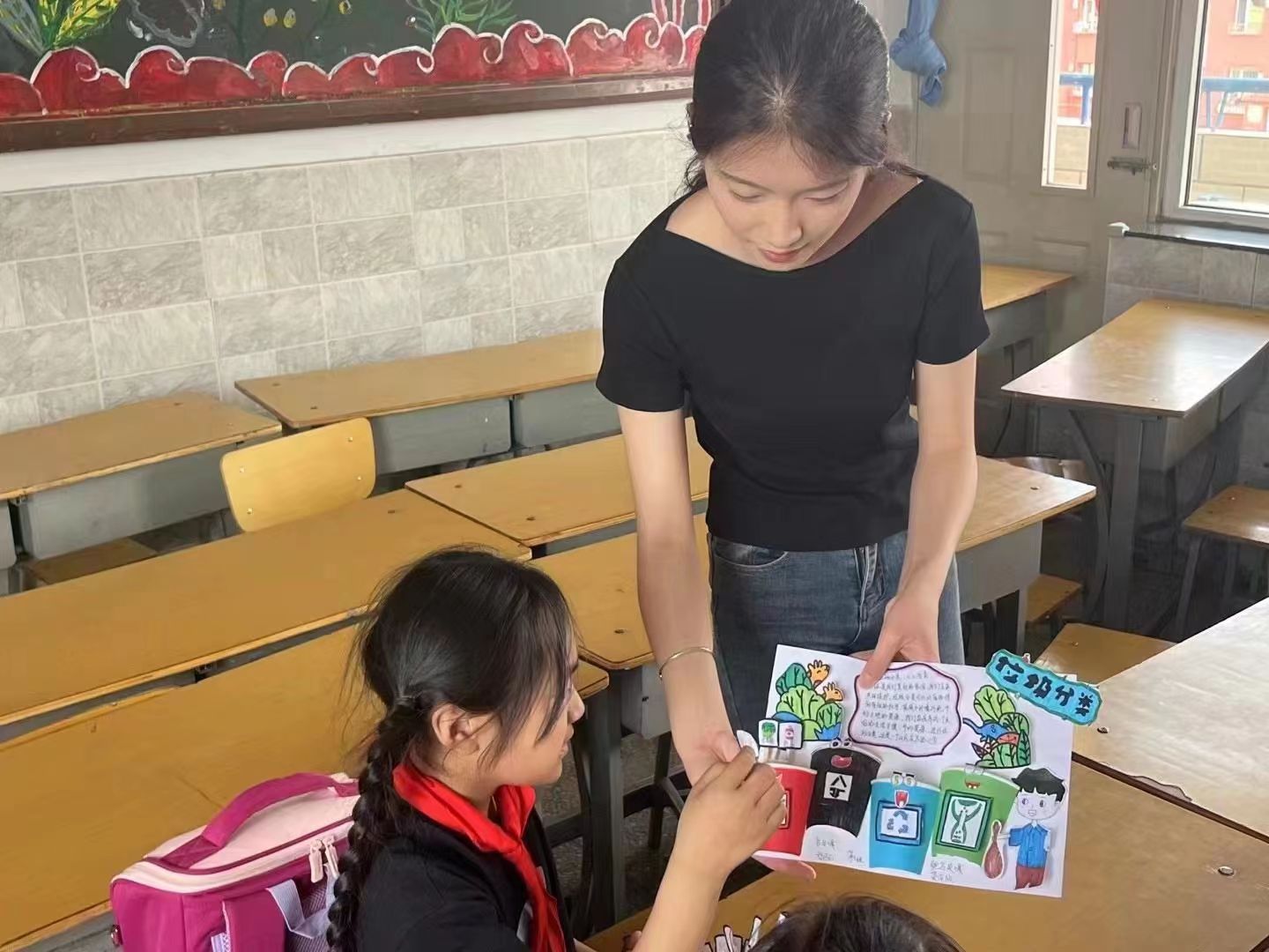 活动分两组进行,第一组的同学们为三年级小学生们带来了一场精彩的《垃圾分类》互动课堂。她们带着垃圾分类科技作品,用生动的语言和形象的生活中案例,向孩子们介绍了垃圾分类的意义和方法,让大家亲自参与垃圾分类活动,培养孩子们在日常生活的科学观念和科学思维。