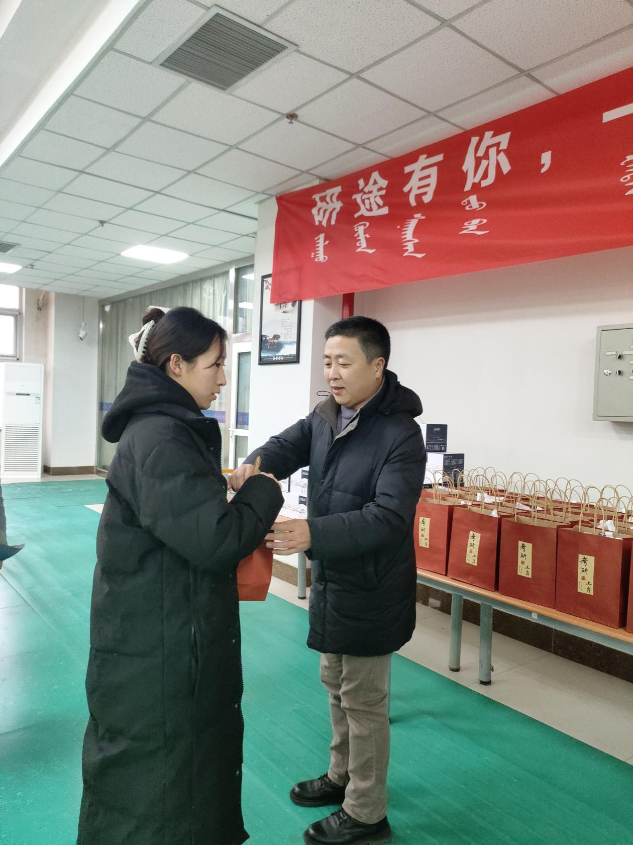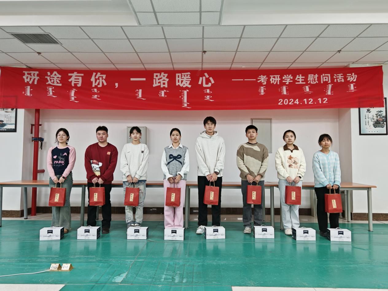为缓解考研学子备考压力,鼓舞考研士气,12月12日,教务处组织开展“研途有你,一路暖心”考研学生慰问活动,教务处副处长额日德木图代表学校为考研学生送去了考试必备的文具套装和牛奶。