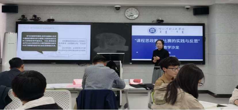 随后,拟参加京津冀蒙本科高校课程思政教学比赛的包呈敏、杨耀天、王佳三位教师依次进行现场汇报,展示课程思政教学成果、阐述备赛思路。