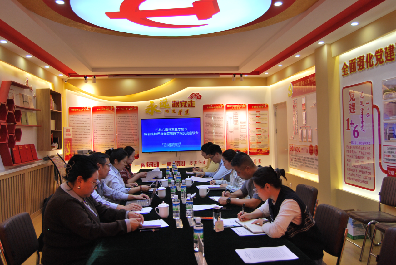 本次考察学习主要围绕挖掘巴林右旗红色档案资源,以及馆藏特色档案、非物质文化遗产档案、乌兰牧骑档案和实习实训基地建设等方面展开。最终,双方以联合申报的内蒙古档案科技项目为起点,聚焦乌兰牧骑等特色档案,开展系统梳理与深度挖掘,提炼其中蕴含的民族团结元素与时代价值,并通过档案汇编、数字化整理和课题研究等方式实现档案的科学保护、系统整理与创新利用。