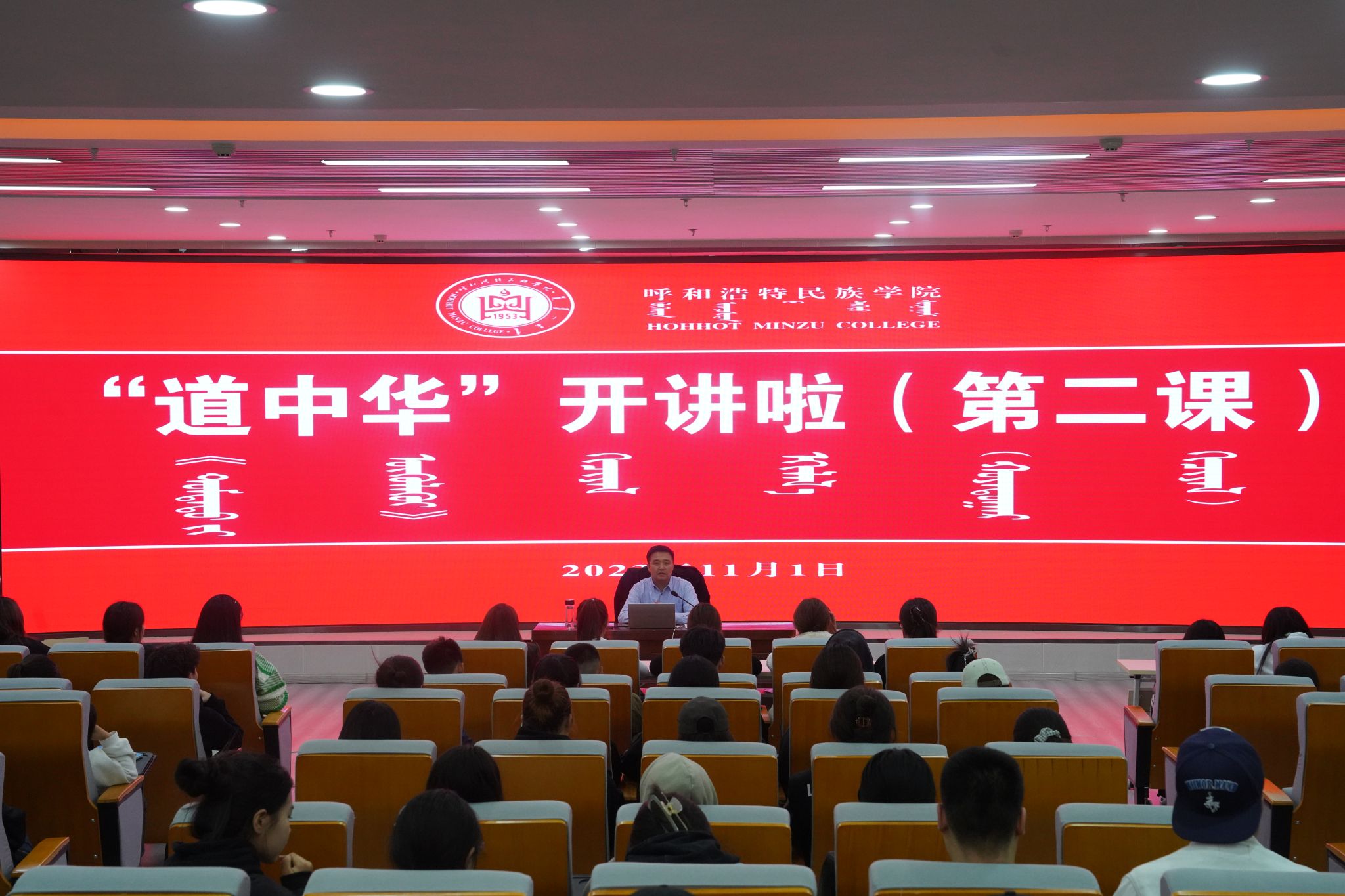 蒙古学学院(翻译学学院)学生工作办公室副主任、团总支副书记程刚及蒙古学学院150余名学生聆听宣讲报告。