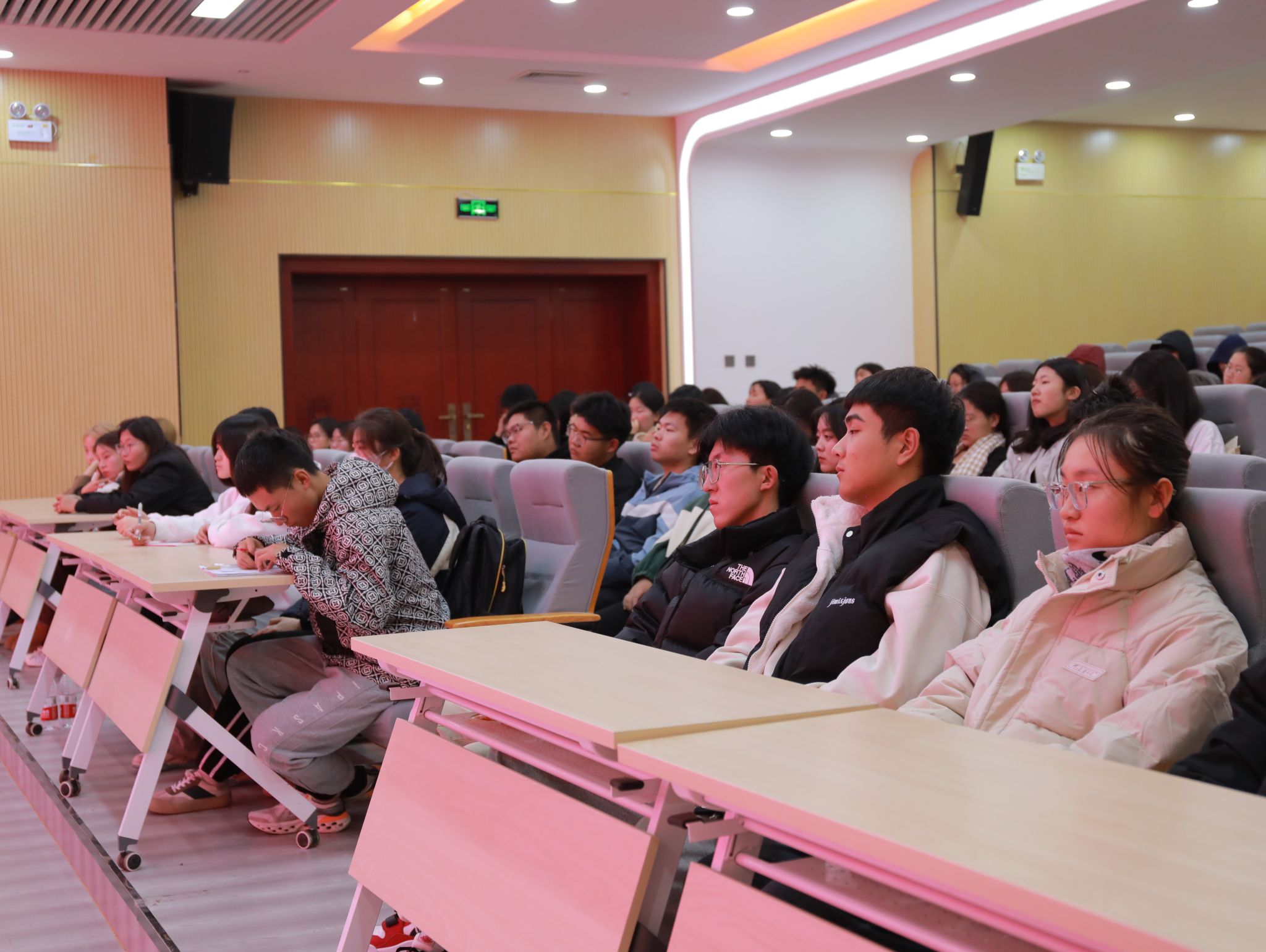 文学院辅导员宝力尔及文学院150余名学生聆听宣讲报告。