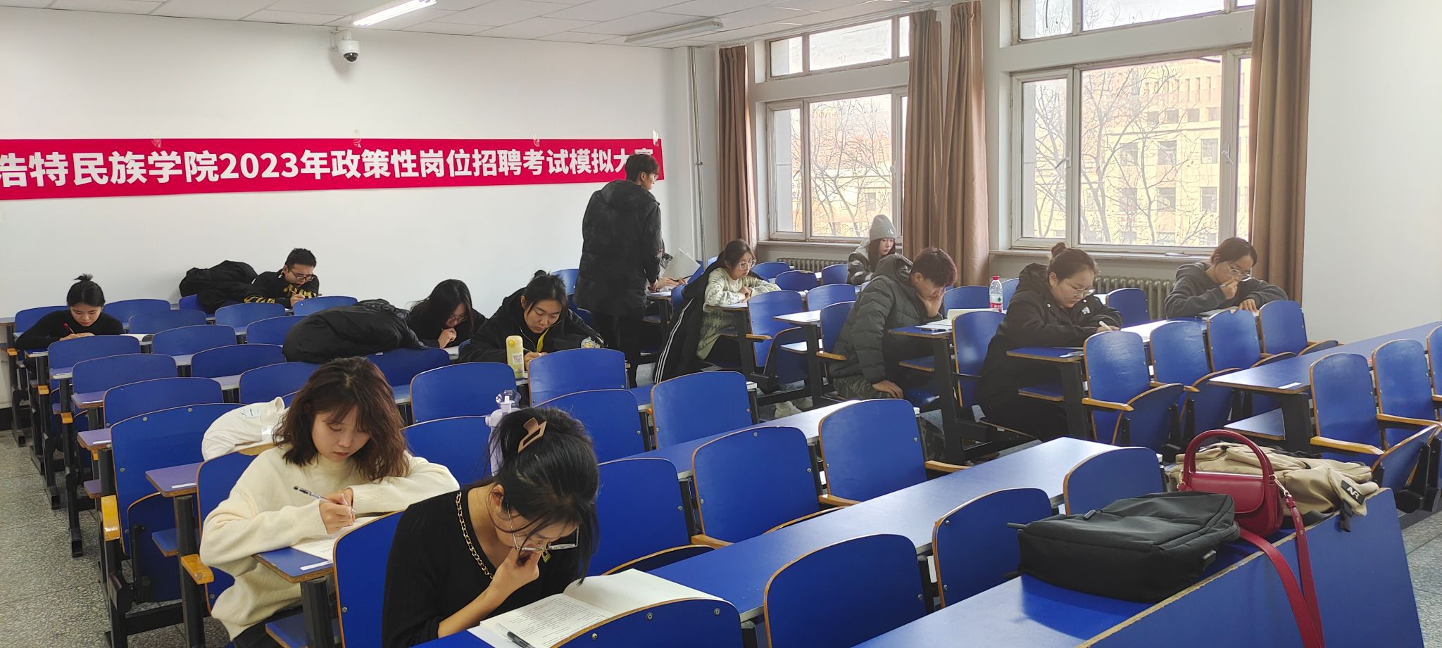 11月25日,举办大学生政策性岗位招聘考试模拟大赛,使学生了解此类考试的题型、题量,进一步对考试准备情况进行预估,帮助学生提高对政策性岗位招聘考试的认知,积累应试经验,提升考试水平。共有200余名学生报名参赛。