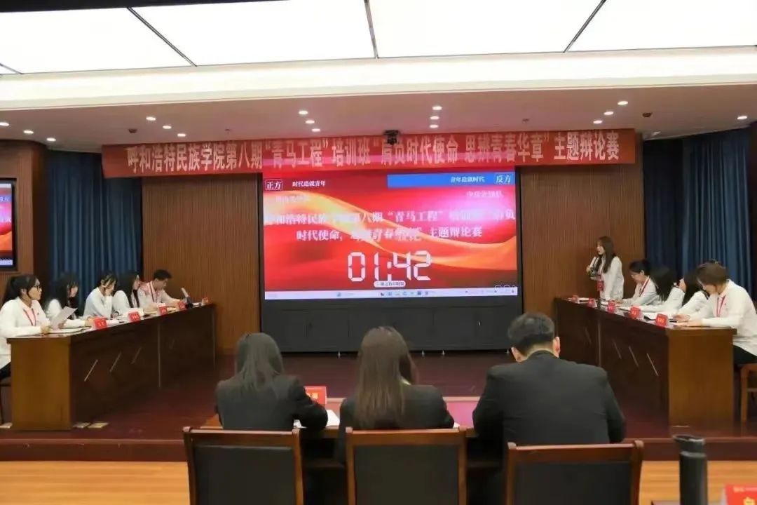 11月17日晚,全体学员在综合楼会议室,举行了以“肩负时代使命,思辨青春华章”为主题的辩论赛。双方辩手围绕“时代造就青年”和“青年造就时代”展开了激烈的辩论。辩手们沉着冷静,逻辑严谨,充分展现了自己的才华与口才,呈现了一场精彩绝伦的辩论赛。