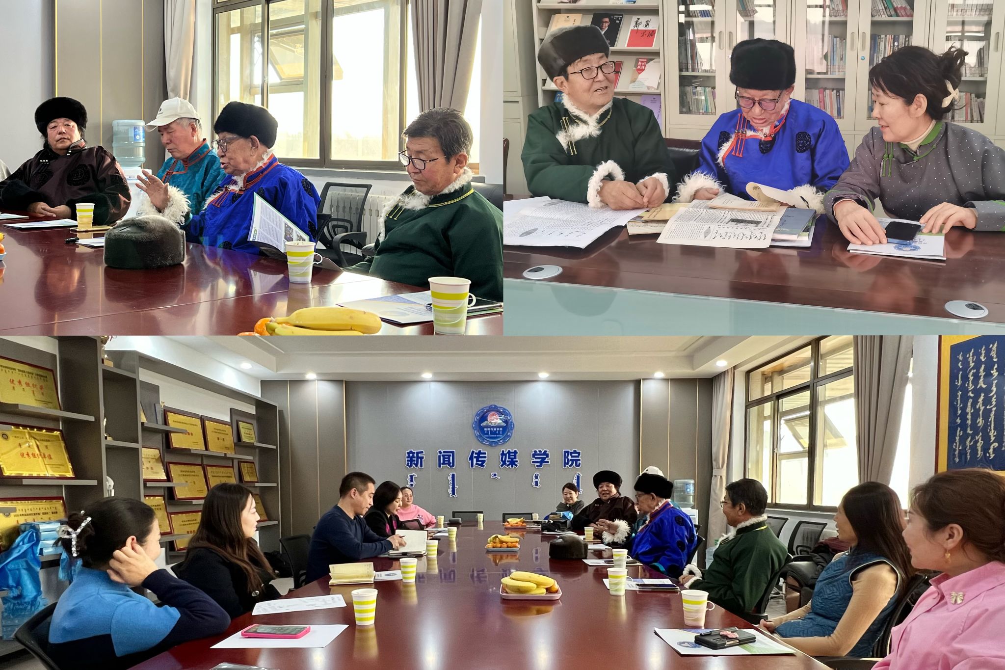 12月26日,新闻传媒学院荣休教师巴拉吉、巴图那顺携90级和96级播音班校友来校,向学院赠予纪念礼物并开展座谈交流,学院领导班子及播音与主持艺术教研室教师参与座谈。