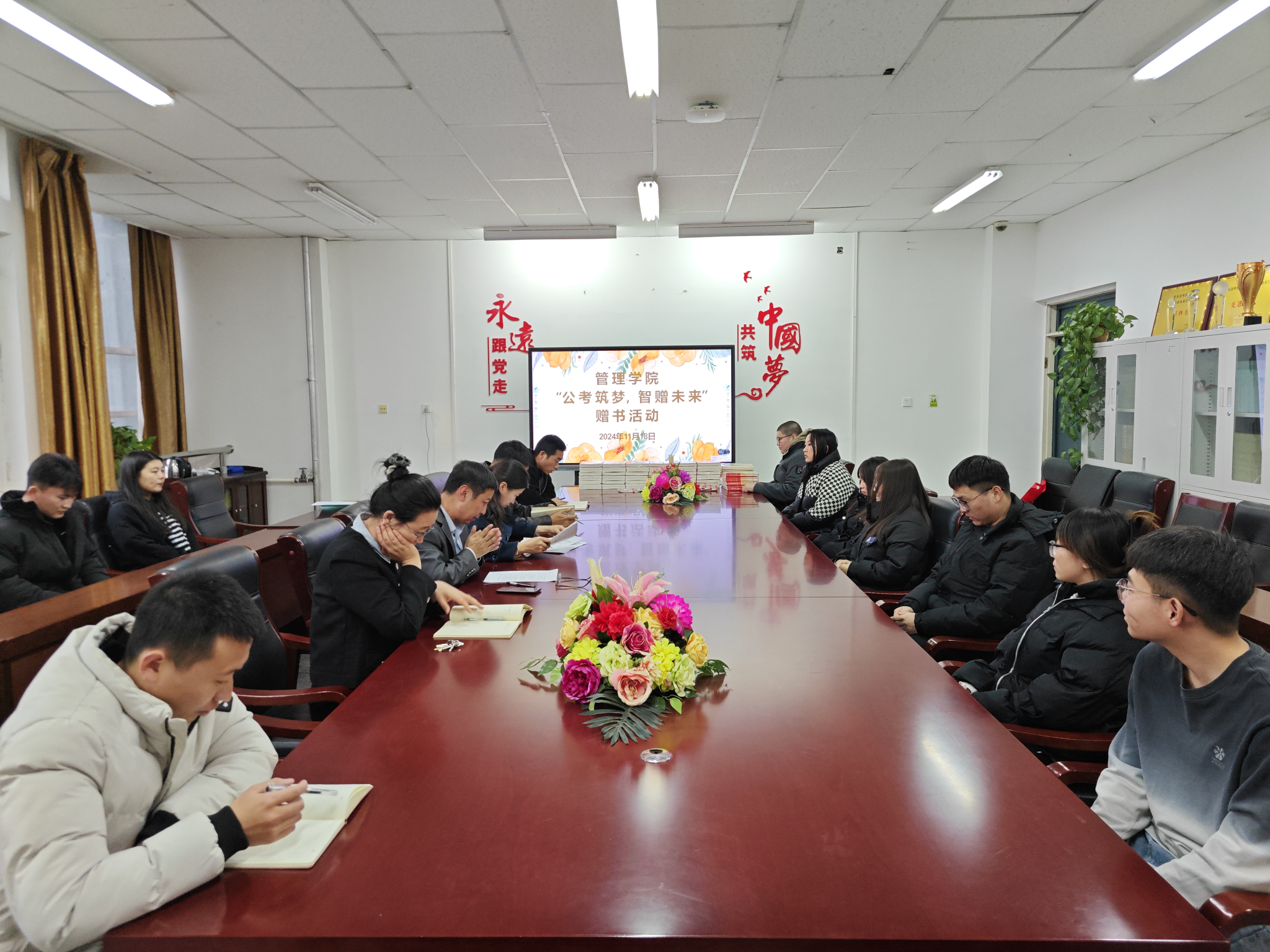 为促进管理学院学子高质量充分就业,助力同学们备战公务员、事业编及考研等考试,提高公考应试能力与竞争力,11月18日下午管理学院开展“公考筑梦·智赠未来”赠书活动。