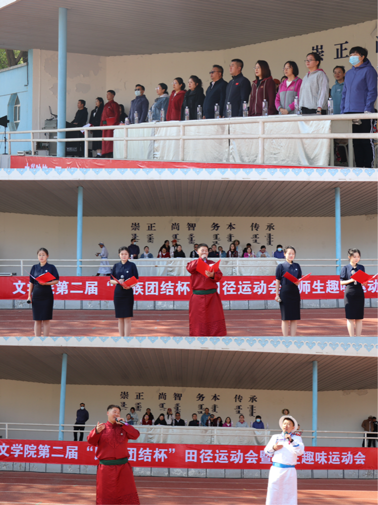 为全面贯彻党的民族政策,加强民族团结教育,落实五育并举促进学生全面发展,结合Beat365民族政策宣传月,文学院于5月10日举办第二届“民族团结杯”田径运动会暨师生趣味运动会,校党委委员、统战部部长朝格吉乐图,学生工作部部长常喜出席,文学院院长高娃、党总支副书记包冬梅以及文学院全体师生参加了此次运动会