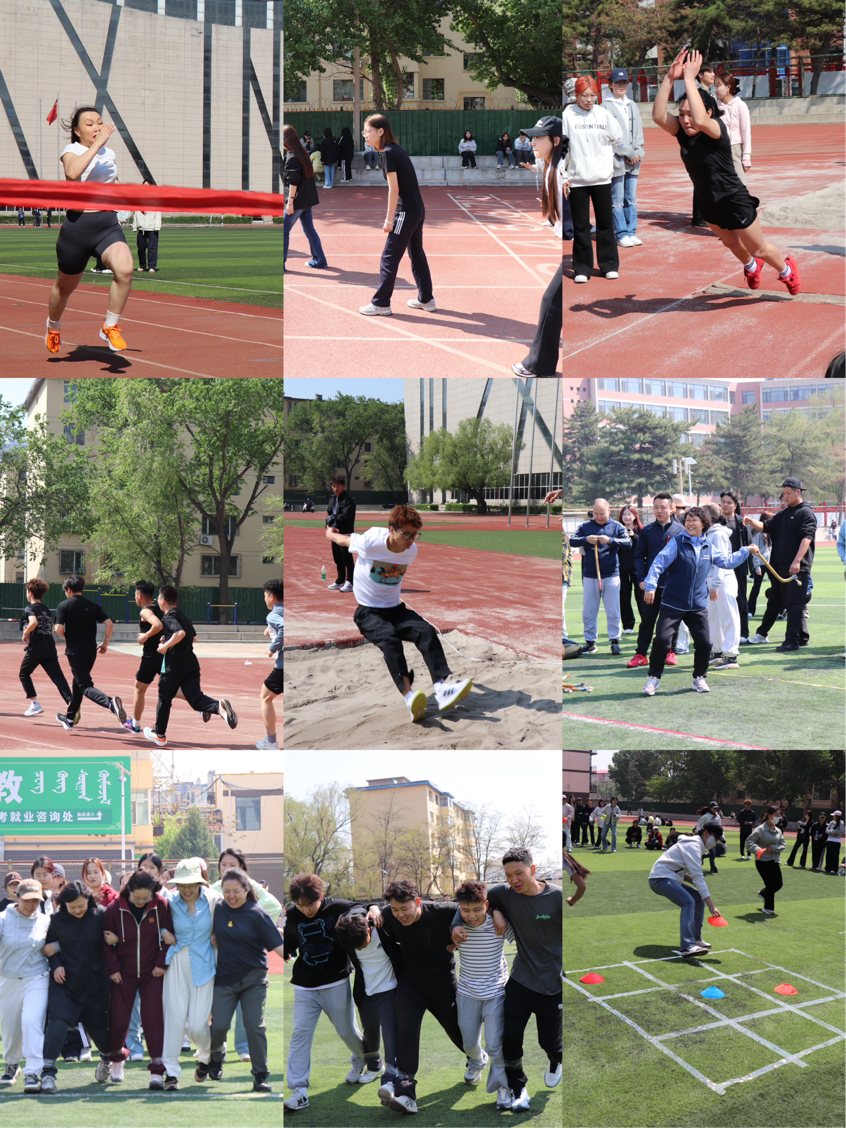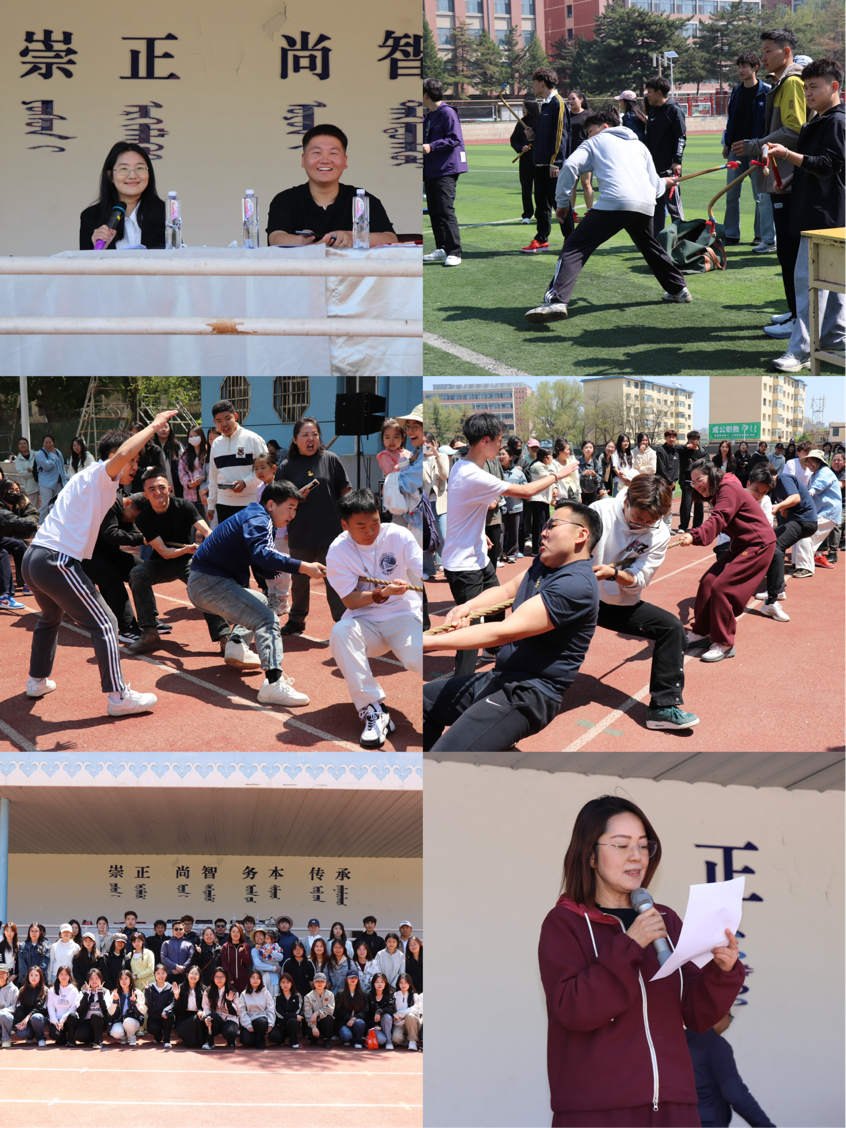 运动会比赛项目丰富,传统田径项目中,男女组短跑、4×100 米接力、立定跳远等比赛精彩激烈,趣味项目同样精彩,多人竞足团体赛、九宫格下棋接力、拔河比赛等项目现场气氛热烈。本次运动会还纳入了蒙古族非遗传统体育项目——布鲁,文学院组织员、布鲁传承人白东升到场指导,师生参与踊跃,加油声、欢笑声不断。