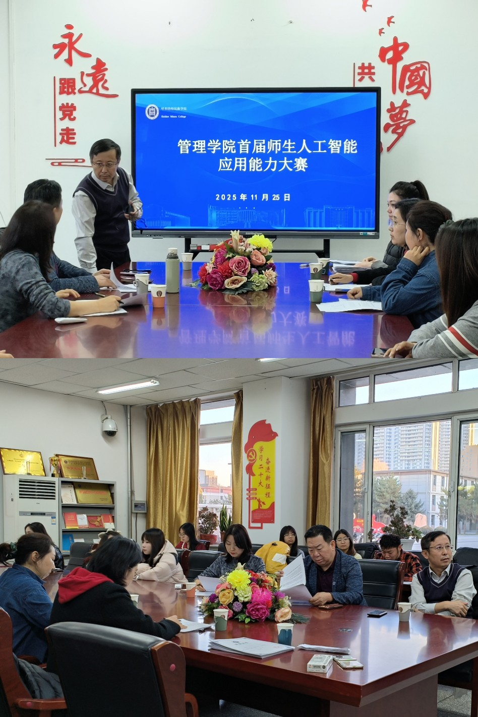 11月25日,管理学院在尚智楼112会议室举办了首届师生人工智能应用能力大赛初赛(学生组)。本次赛事特别邀请了计算机与信息技术学院教授冯培禄、化学与环境工程学院博士陈玉珍、对外合作与交流中心副主任马冬梅副教授、教务处实践管理科负责人吴秀荣。吸引全院9支学生队伍、26名学子参赛,提交作品9件,涵盖艺术与娱乐智能体、校园管理应用智能体、教育教学智能体、社会公益赋能智能体、校园生活应用智能体等多个竞赛内容。