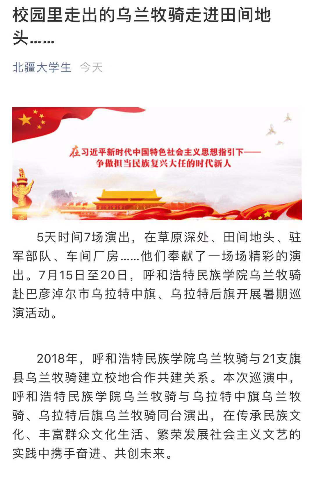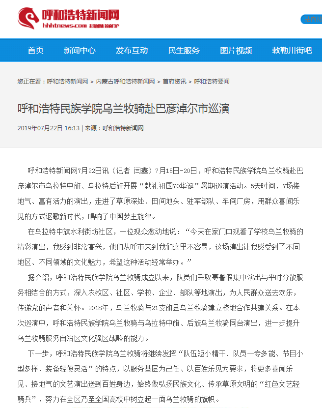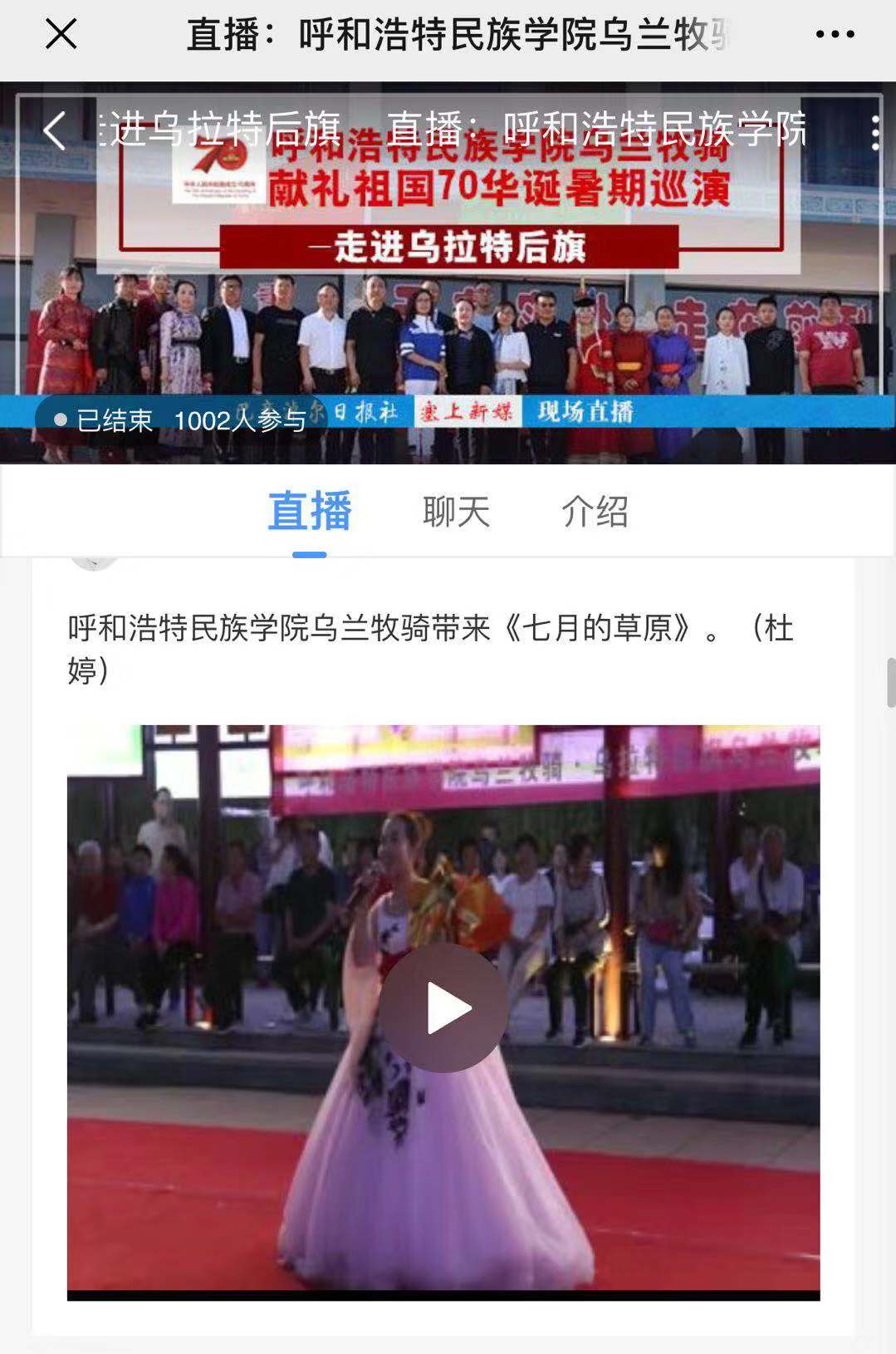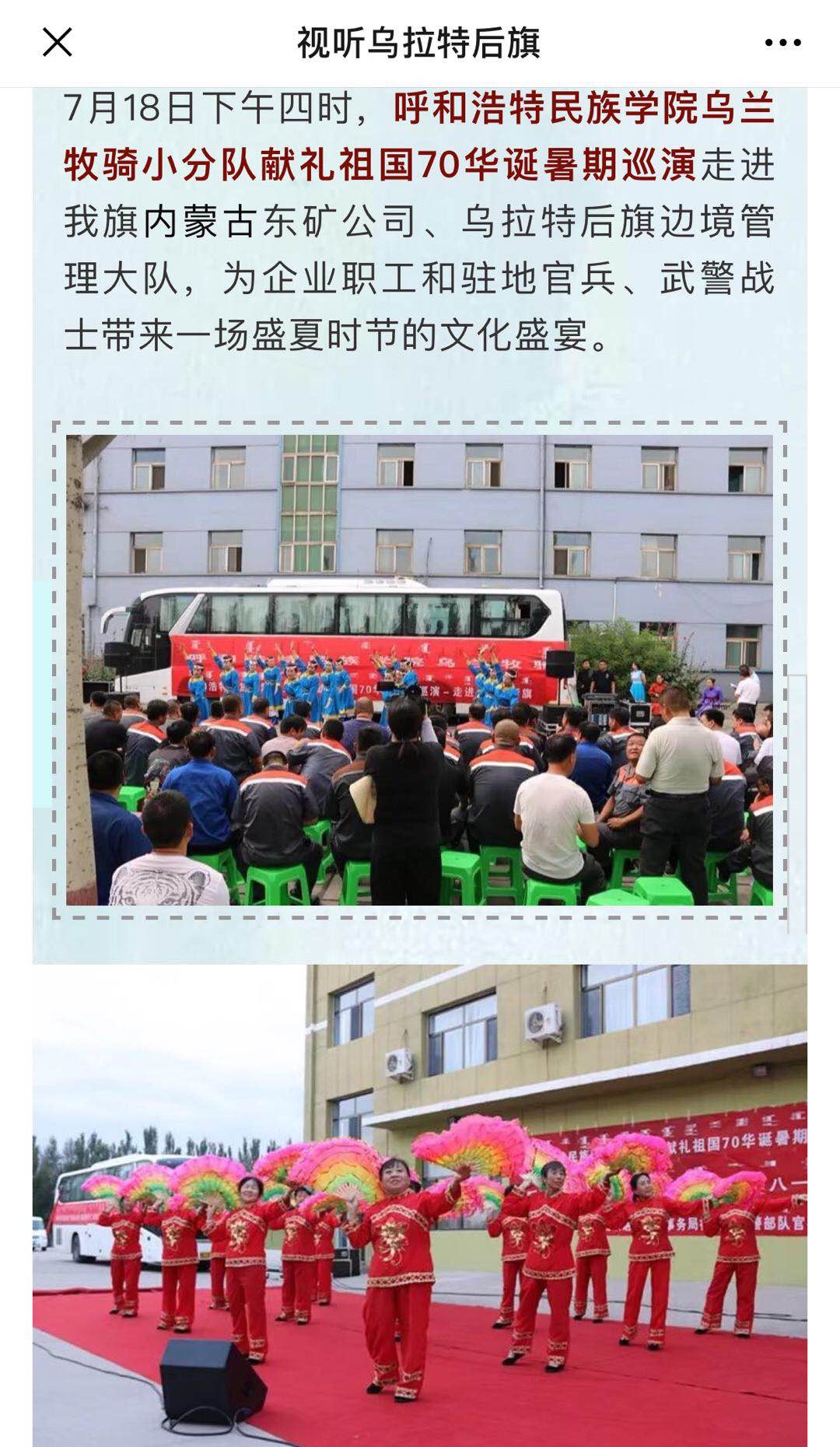 7月15日——20日,Beat365乌兰牧骑赴巴彦淖尔深入农村、牧区、企业、军营、社区,开展“献礼祖国70华诞”暑期巡演活动。