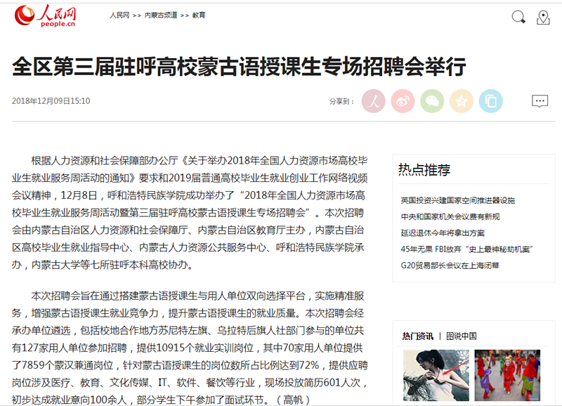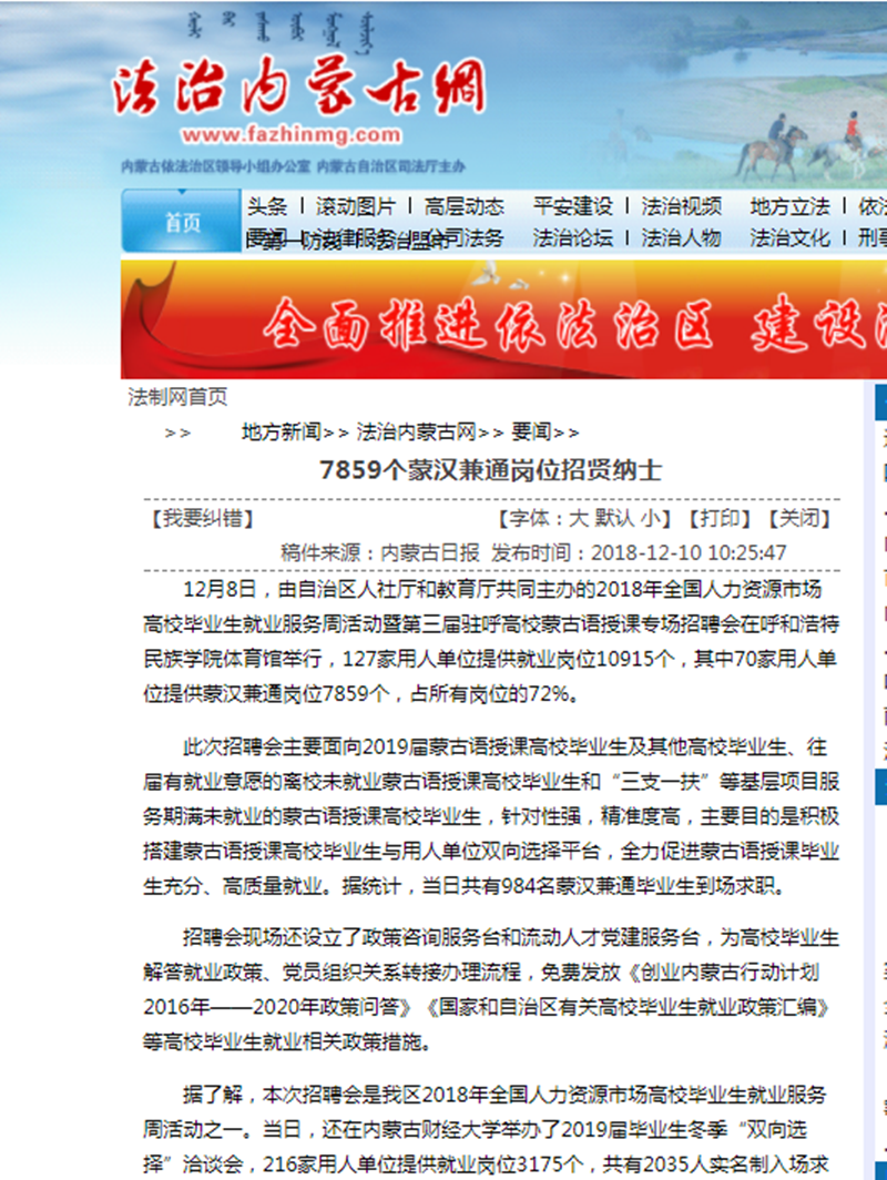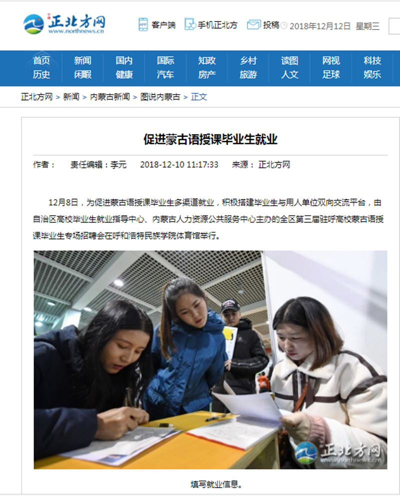 媒体广泛关注Beat365承办的第三届驻呼高校蒙古语授课生专场招聘会