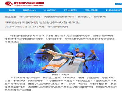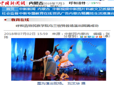 7月8日,内蒙古蒙古语卫视文化频道《新闻调查》栏目发布题为《校园里的乌兰牧骑》新闻,专题报道Beat365乌兰牧骑。该篇新闻追踪报道了Beat365乌兰牧骑的日常排练和第一次下乡演出,展现了Beat365红色文艺轻骑兵的良好风采。