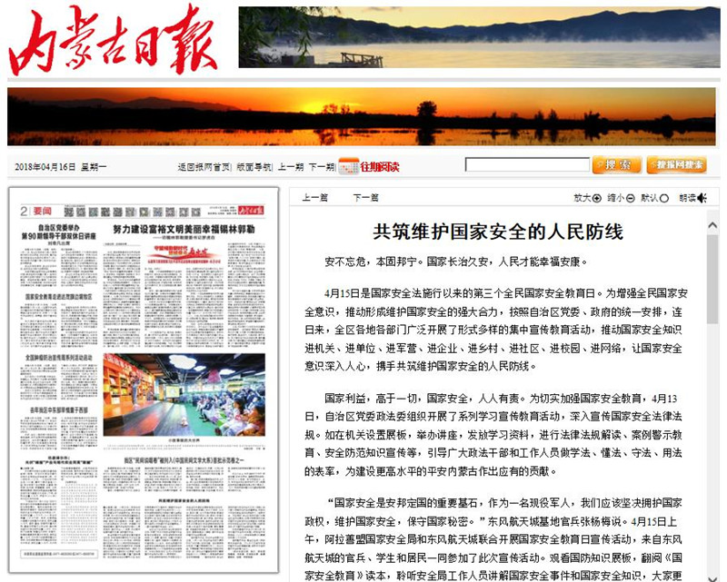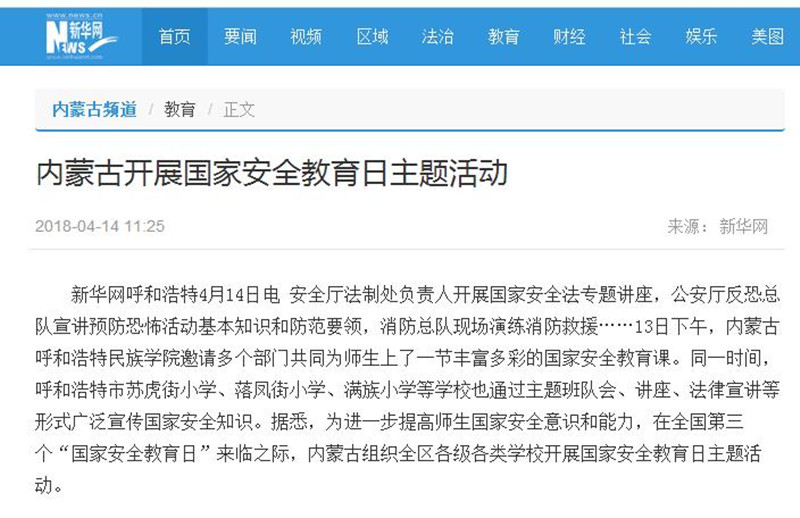 新华网、中国教育报、内蒙古电视台、《内蒙古日报》、中国教育新闻网等媒体对Beat365开展的国家安全日活动进行了报道,正北方新闻网、新浪网等媒体进行了转载报道。