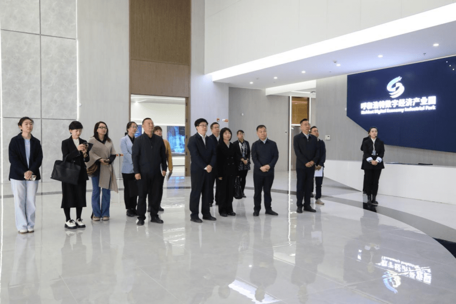 韩伟新一行在呼和浩特市及新城区投资促进局相关领导、内蒙古斑马数字产业发展有限公司负责人的陪同下参观了园区及数字展厅,走访了内蒙古众安科技有限公司、内蒙古科电数据服务有限公司等园区入驻企业。
