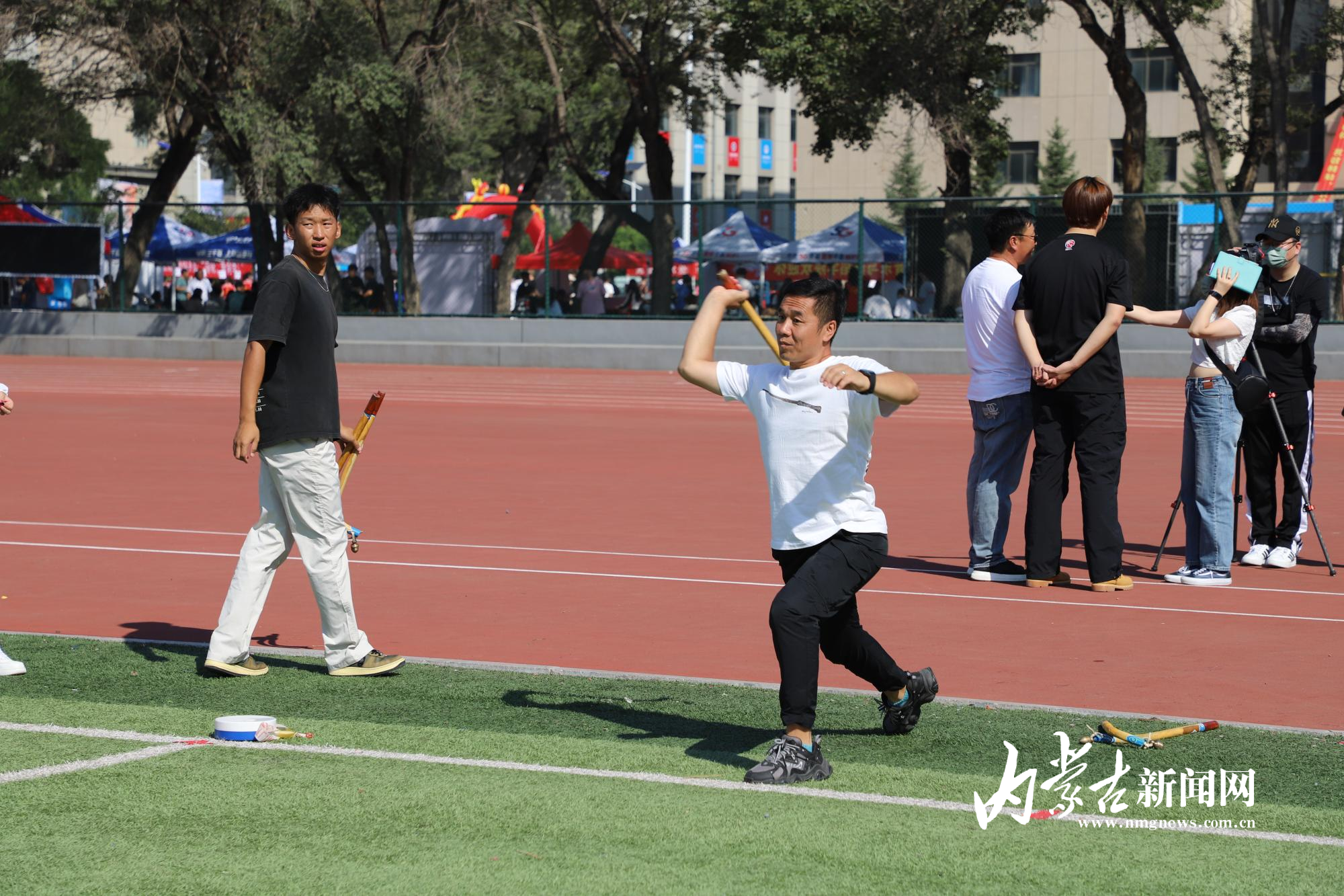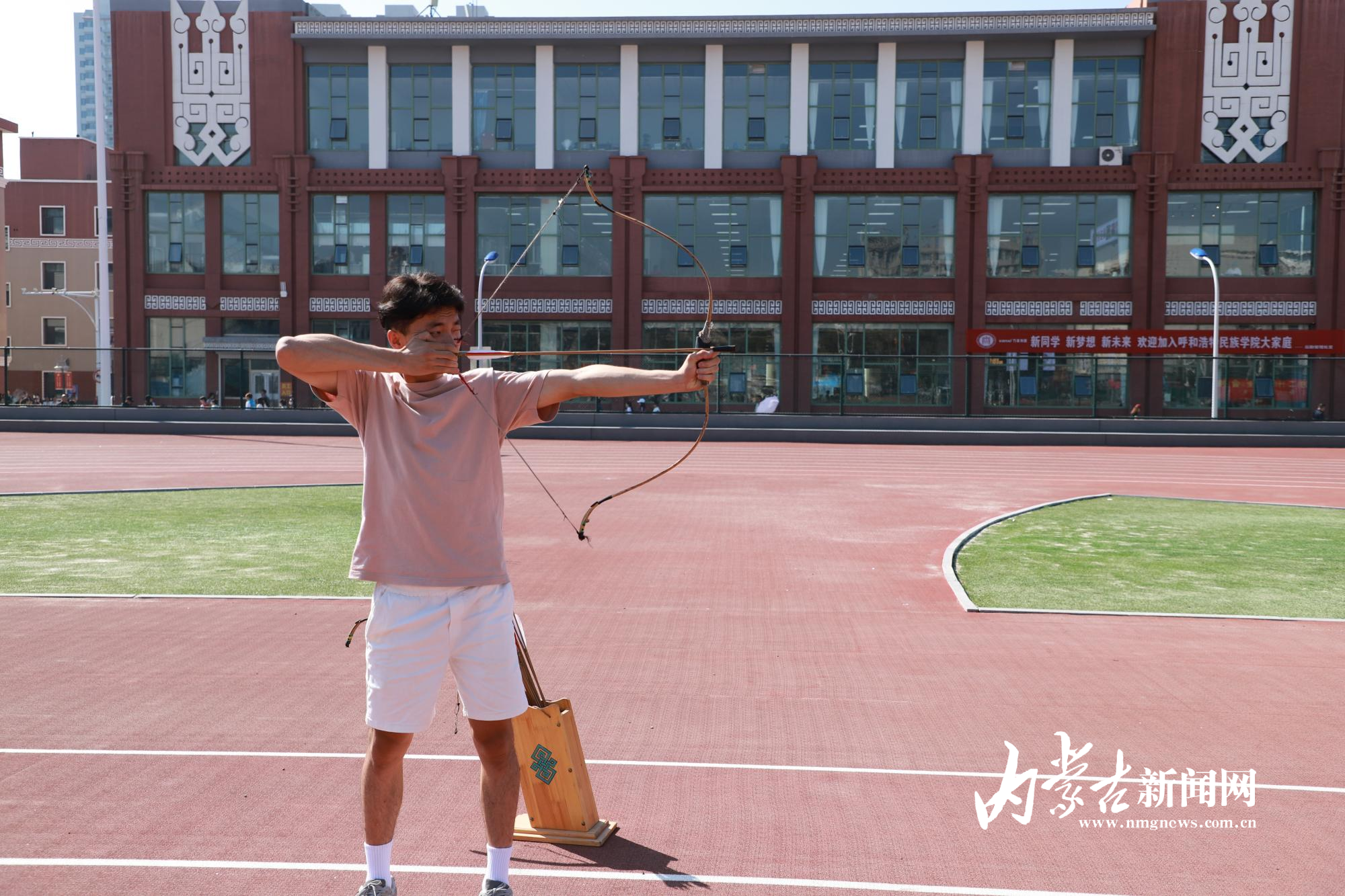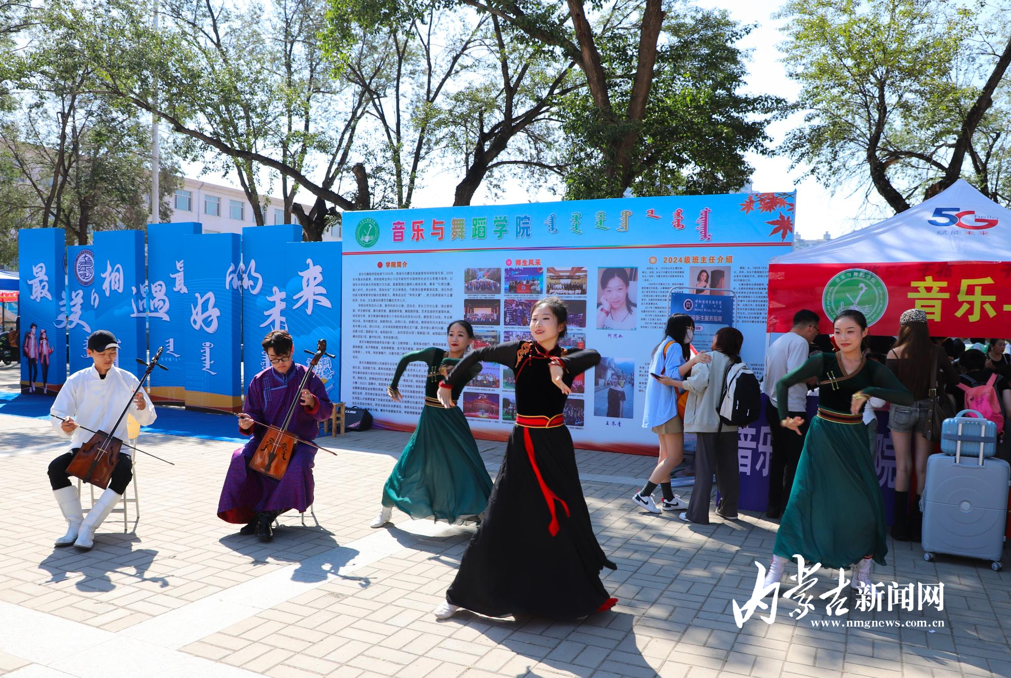 迎新现场,悠扬的马头琴、欢快的舞蹈轮番上阵,迎接远道而来的“小清新”。展示区内,非遗艺术品琳琅满目,不时吸引家长和学生驻足观看。操场上,众多家长和新生兴致勃勃地体验了布鲁、射箭等非遗体育项目。“太新奇了,布鲁飞翔的姿态好美。”第一次投掷布鲁便命中目标,来自通辽市的大一新生维力斯开心地说。