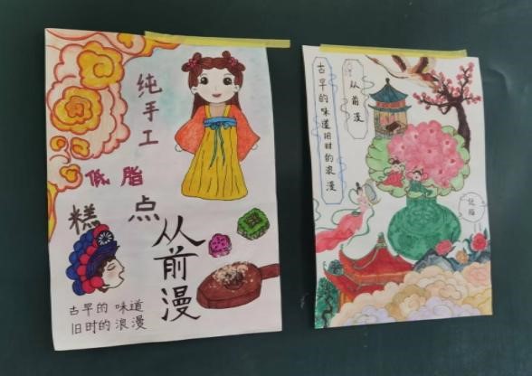 同学们在做好疫情防护的基础上,在老师的指导与帮助下提前准备了一系列制作冰皮糕点的材料和工具,并且手工绘制了宣传海报。活动过程中,同学们分工明确:预拌粉揉团、准备馅料、糕点加工、分类包装、广泛销售… …活动伊始,同学们首先进行了简单的桌面布置,接着便投入了抓紧制作的环节,以确保原料的质量与口感。