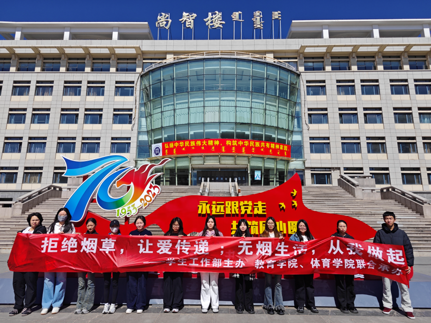 为积极响应国家控烟号召,倡导健康生活方式,营造无烟校园环境,3月20日由学生工作部主办、教育学院与体育学院联合开展了为期一个月的“拒绝烟草 让爱传递 无烟生活 从我做起”主题禁烟活动。此次活动旨在通过宣传教育与实践行动相结合的方式,增强师生对烟草危害的认识,倡导健康文明的生活理念,共同创建无烟校园。