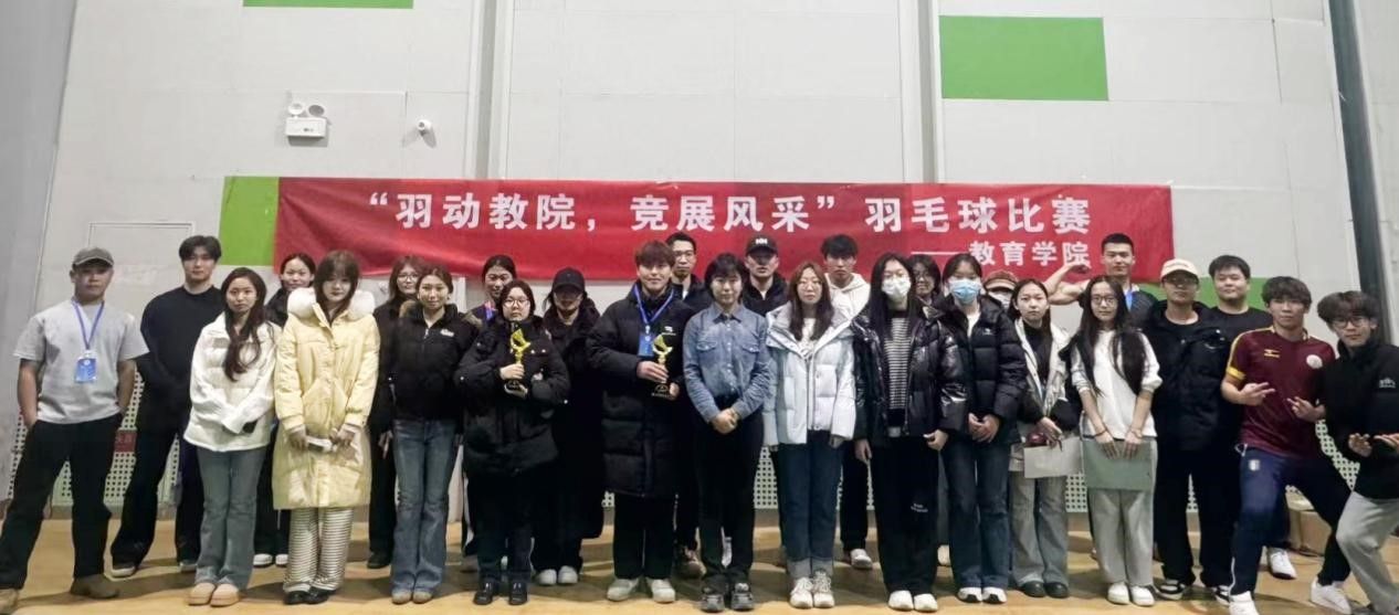 羽动教院 竞展风采——教育学院羽毛球比赛 11月18日至23日,教育学院“羽动教院,竞展风采”羽毛球比赛在体育馆举行。赛事设男单、女单、双打等项目,吸引了60余名学生参与。经过30场激烈角逐,吴健国、周志龙等同学分获女单、男单及双打冠军。 本次比赛不仅为羽毛球爱好者提供了交流平台,展现出教育学院学子的青春风采,也进一步增强了团队凝聚力和集体归属感,为校园体育文化注入了新的活力。